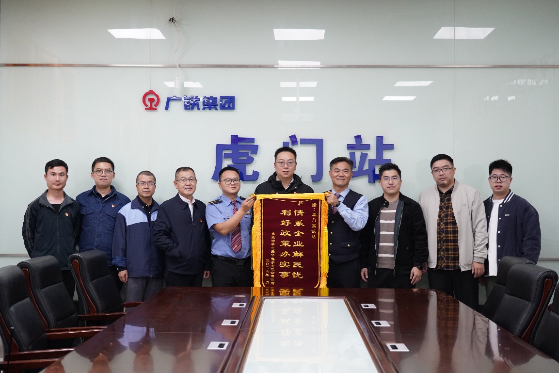 近日,为表达对东莞站、虎门站的诚挚感谢,公司党总支书记、执行董事周波同志代表公司分别向两站赠送了锦旗,并送上新春祝福。东莞站党委书记、站长凌更新同志,虎门站党总支书记刘光富同志、站长环师同志对中电爱华本次活动的组织策划表示了肯定,并对未来双方进一步的交流协同表达了期许。作为东莞地区重要的交通枢纽,两站将全力支持,尽最大努力保障中电爱华员工节假日出行。