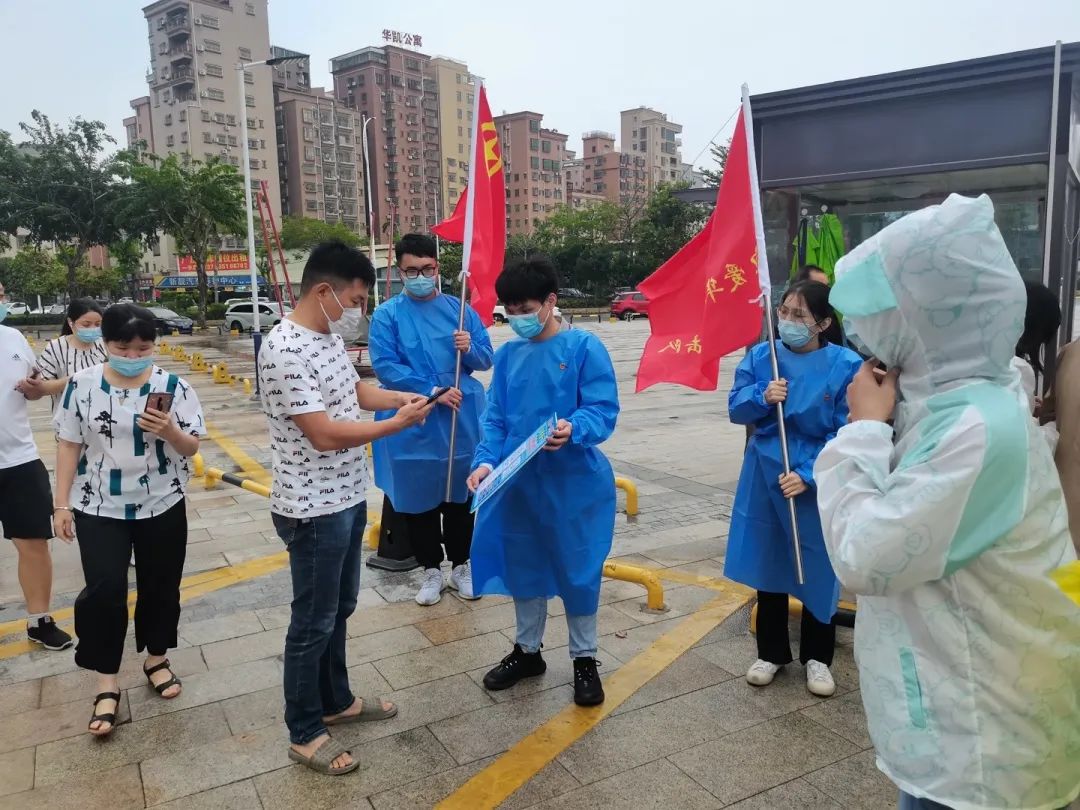 在参与社区核酸检测服务中,中电爱华“青年突击队”积极负责维护秩序、呼吁群众带好口罩、提前引导群众扫码等工作。服务期间因天气原因,大风吹倒部分设施,大家及时帮忙搬运,赢得工作人员的一致好评。中电爱华“青年突击队”以实际行动践行使命和担当,积极筑牢疫情防控坚固防线,为虎门镇防控增添动力。